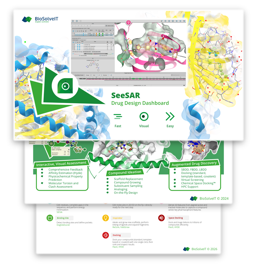 This session from BioSolveIT Day 2025 introduces Chemical Space Docking® (C-S-D) in SeeSAR and shows structure-based exploration across trillion+-sized, make-on-demand compound collections.